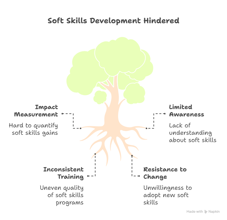 • Difficulty Measuring Impact: Unlike technical skills, soft skills improvement is hard to quantify.
